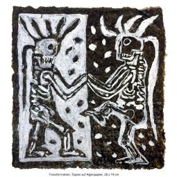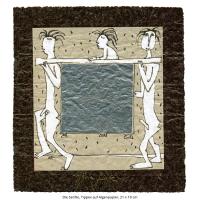 Die Serie handgeschöpfter Papiere umfasst mehr als 50 Arbeiten und besteht aus Palmenblatt, Gräsern und ägyptischem Papyrus.