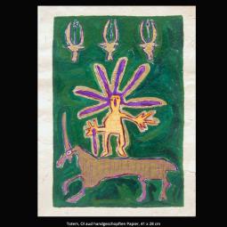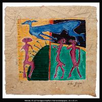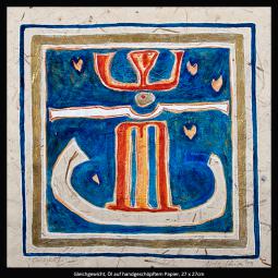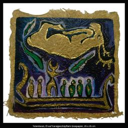 Die Serie handgeschöpfter Papiere umfasst mehr als 50 Arbeiten und besteht aus Palmenblatt, Gräsern und ägyptischem Papyrus.