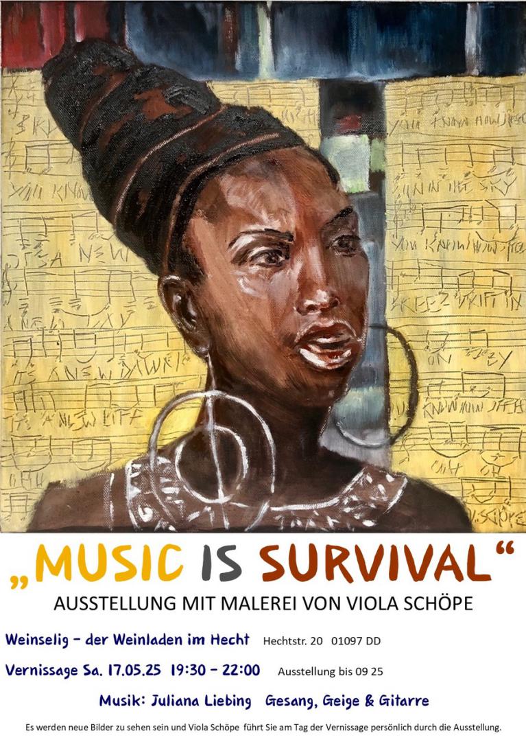 Die Bilder Viola Schöpes sind Ausdruck einer poetisch orientierten Näherung an die Welt. Quellen der Inspiration sind ausgedehnte Reisen in eher untouristische Gebiete unserer Erde sowie die Beschäftigung mit dem Ideen- und Gedankenspektrum fremder Völker. Einfache, elementare Formen und Zeichen sowie kräftig leuchtende Farben sind dabei wesentliche Gestaltungselemente. Manche Naturform wird bis zur Grobheit reduziert, andere Figuren und Gegenstände scheinen schwerelos zu sein. Mehrere Bild- und Sinnschichten überlagern einander. Dingliche Konkretheit und teilweise irrationale Räume werden in eine quasi selbstverständliche Einheit gebracht. Dabei verwischen Grenzen, verringern sich vermeintlich unüberbrückbare Distanzen. Skurrile Individuen, Traumgestalten, Tiere und Boote finden sich zu einem archaisch anmutenden Reigen zusammen. Die geistigen Aspekte ihrer Bilder gehen über das direkt Dargestellte hinaus. Energisch und hintersinnig zugleich sprechen die Arbeiten existentielle Fragen an: was treibt den Menschen in seinem Tun an, wie geht er mit der Umwelt um, worüber denkt er nach? Abgründe und Glücksverheißungen liegen eng beieinander.