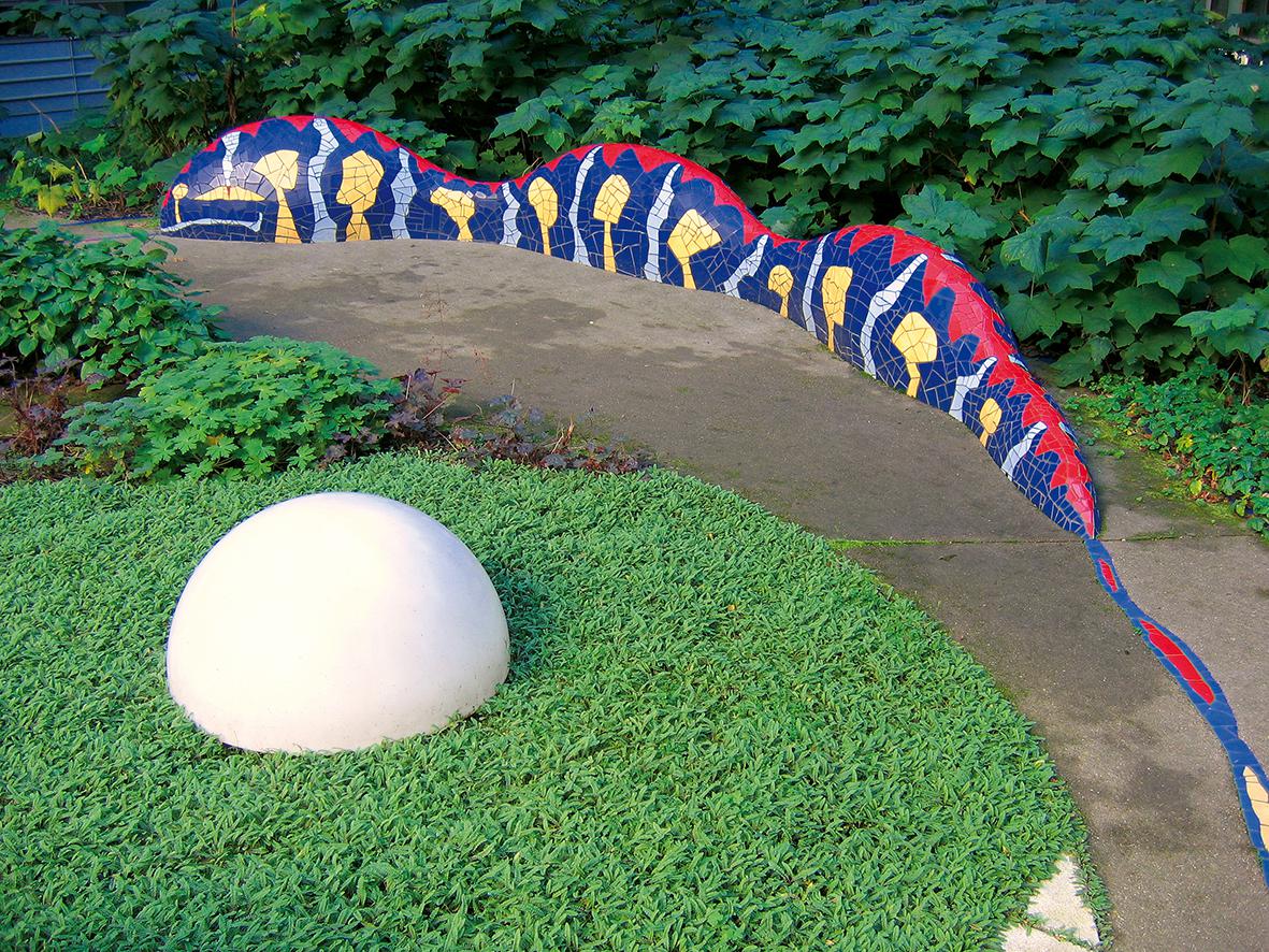 Die Innenhof der Kinderkinik des Universitätsklinikums in Dresden wurde im Jahre 2002 in Zusammenarbeit mit Landschaftsarchitekten erstellt.
